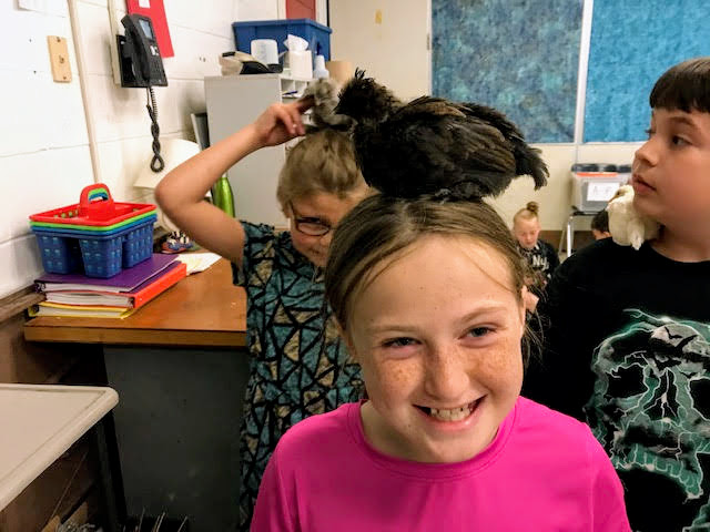 LOCAL DAIRY PRODUCTS WERE FOCUSED UPON IN THE CAFETERIA THIS JUNE The Abbey Group organized a visit by a representative from Cabot Cooperative to come by and offer everyone samples of four different types of cheese. The tasting table proved extremely popular with students and adults of all ages. Here is a LINK TO 22 PICTURES of the event. 6-14-2019. CHICKENS IN RESIDENCE AT SACS For years the kindergarten teams have hatched chicks and duckling as part of their embryology instruction program. This year our school, and Team USA, agreed to keep some of those newly hatched chicks and raise them to adult chickens. These chickens would become permanent residents of SACS. This spring, students from USA raised the chickens and invited younger students to play with them as they grew. This batch of photos shows students from Navigators, Imagination and USA. The Stewardship committee helped support the purchase of equipment to raise and house the chickens. Check out the pictures below.